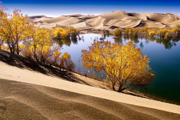 3、塔里木盆地:塔里木盆地是中国最大的内陆盆地,拥有世界第二大流动沙漠——塔克拉玛干沙漠,沙漠中,沙丘连绵起伏,景色壮观。